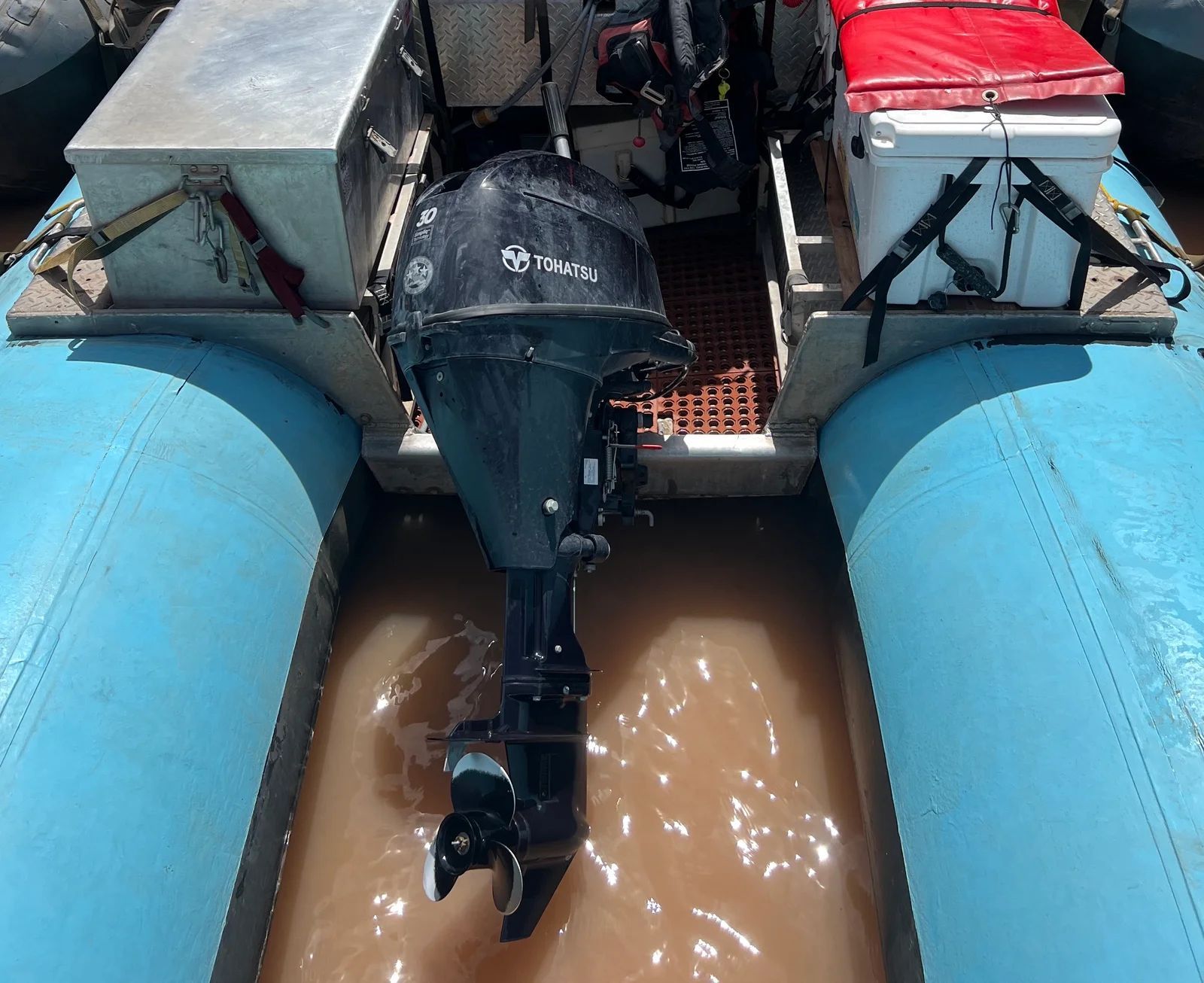 Tohatsu Outboard Engine on raft.