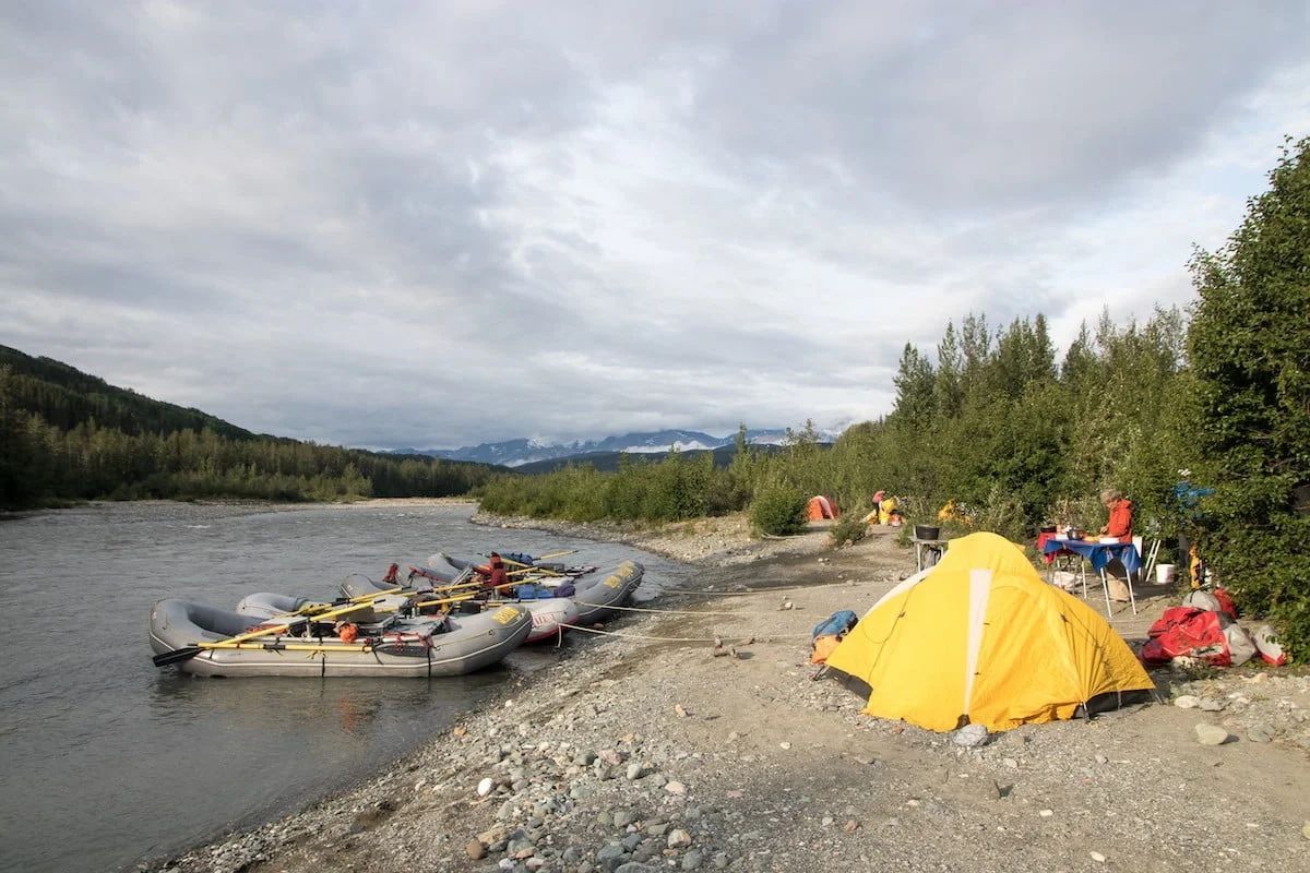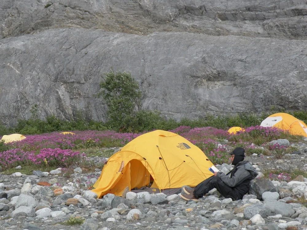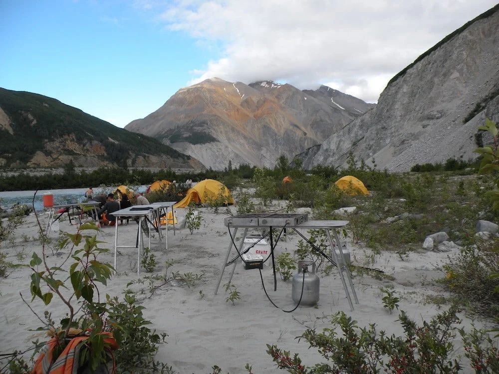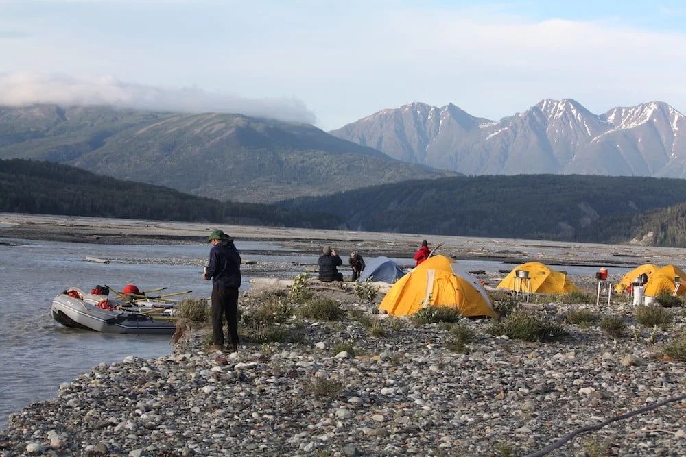 Two-person tents are provided for weather protection or upon request; Alaska trips use expedition-grade dome tents with rain flies.