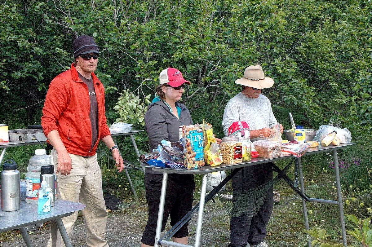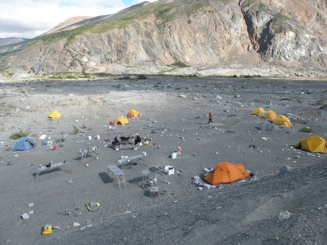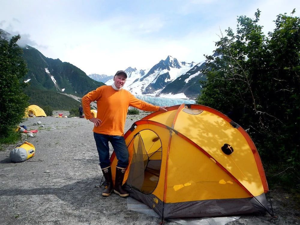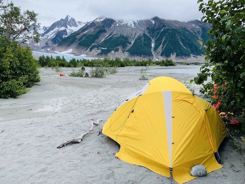 Two-person tents are provided for weather protection or upon request; Alaska trips use expedition-grade dome tents with rain flies.