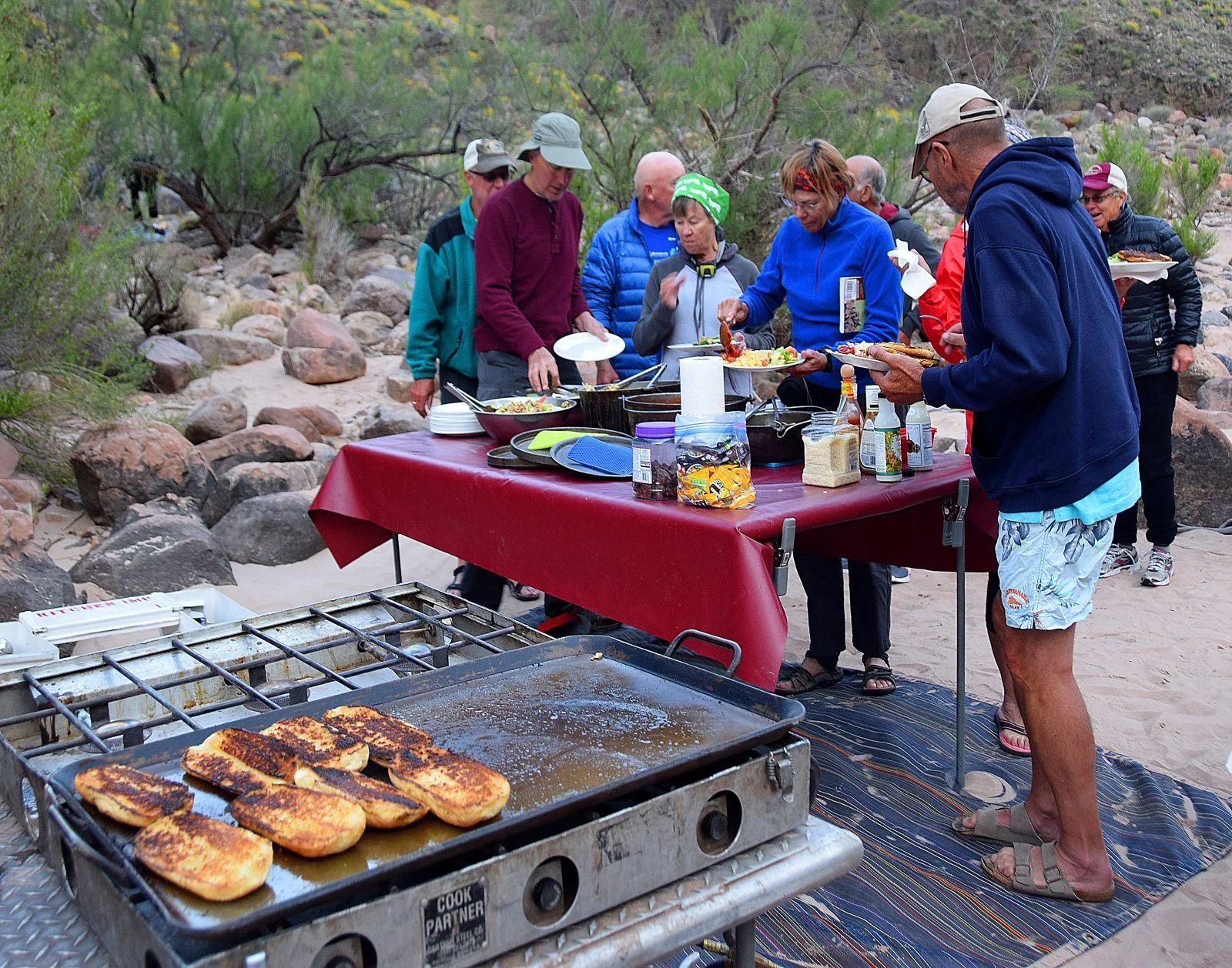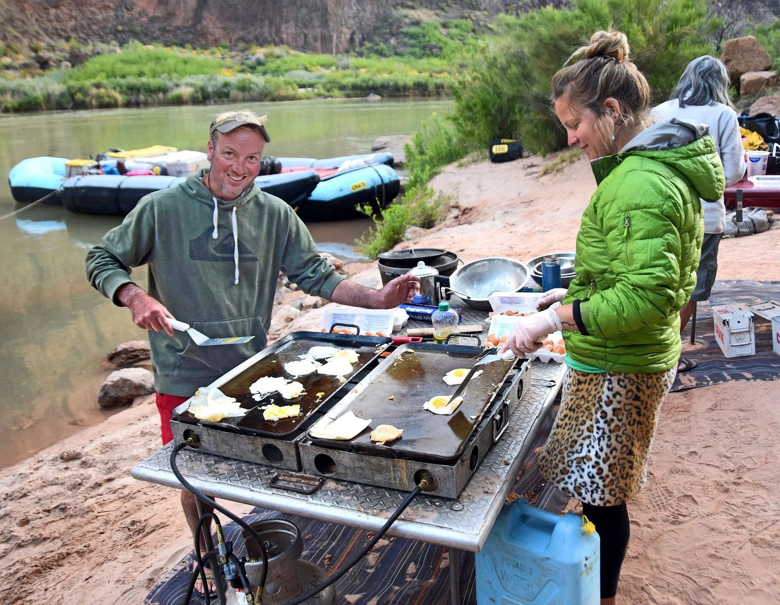 We emphasize sanitation and cleanliness on the river. Portable hand-washing devices are set up in every camp and during lunch breaks.