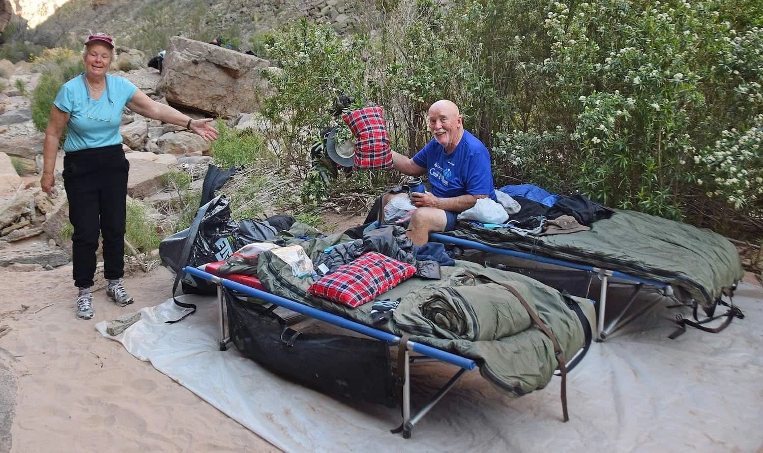 You will enjoy sleeping under the stars on our comfortable cots (motorized trips). Note: cots do not fit inside our tents.