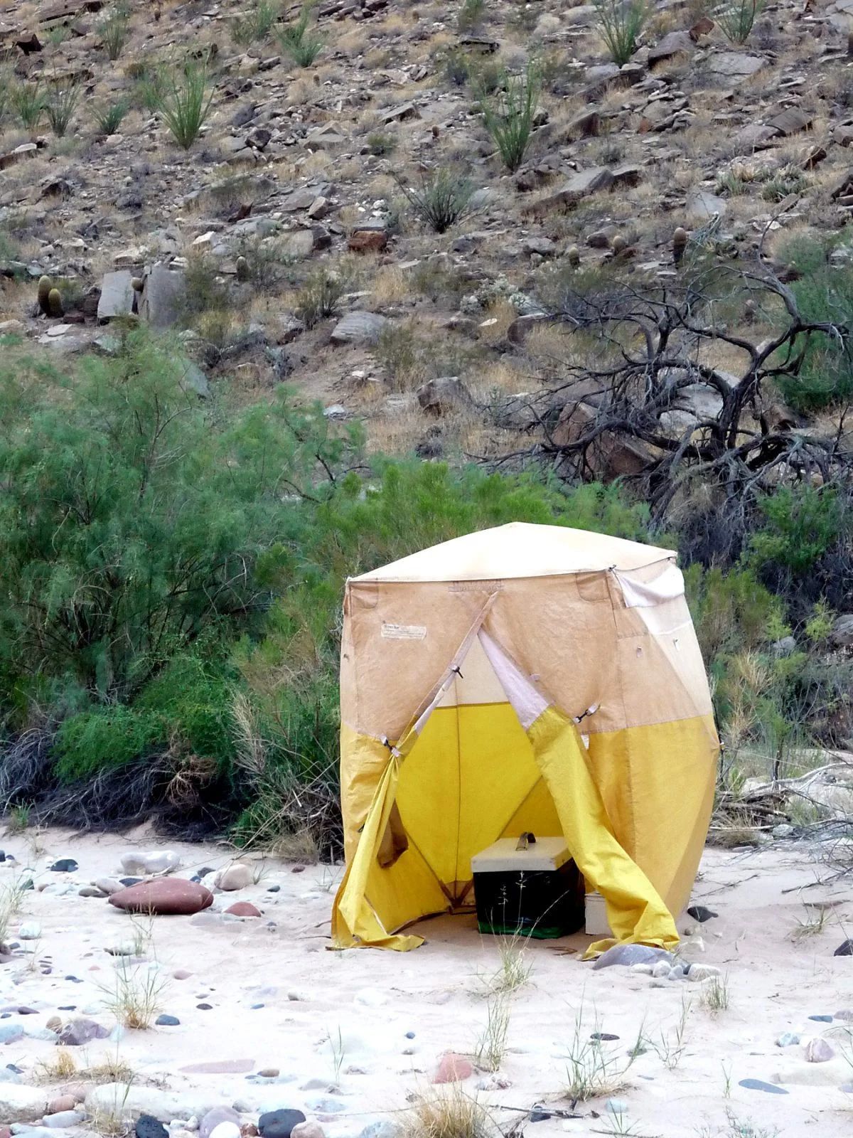 Portable toilets facilities are set up at each camp during the trip.