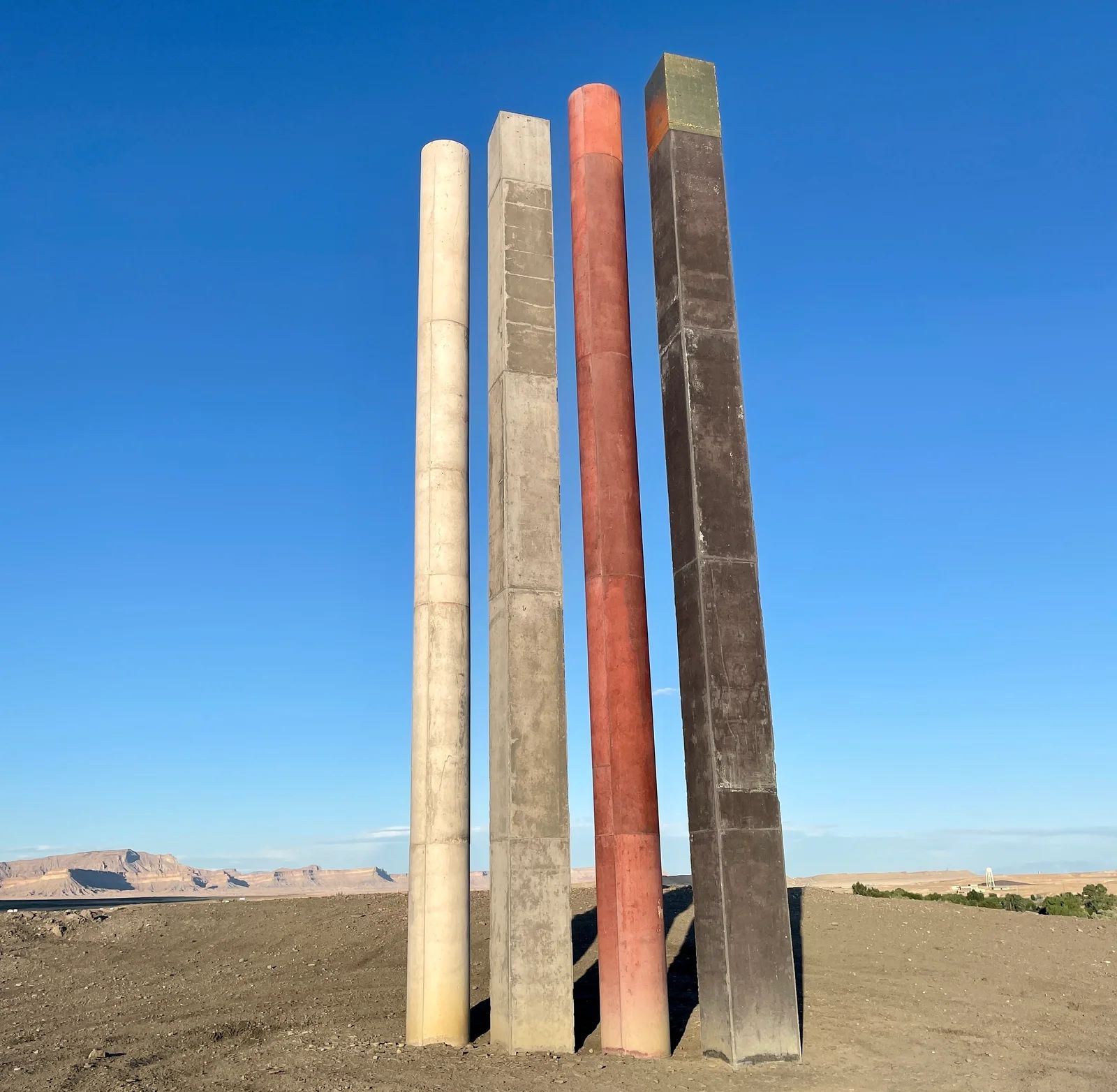 Andrew Rogers added a second sculpture to Green River’s Sculpture Park in 2013 with “Elements,” a structure composed of four 10 meter high towers representing Earth, Wind, Fire, and Water. One of the towers is topped in 23-carat gold.