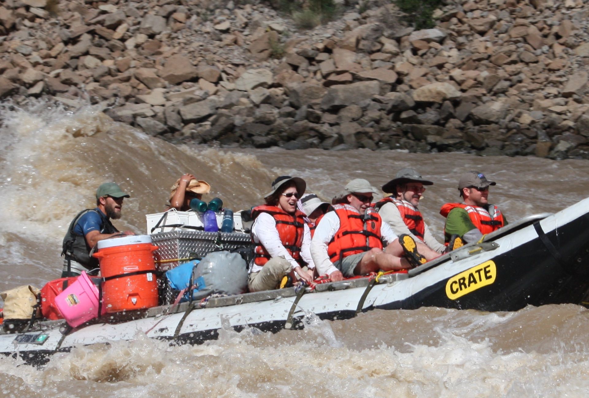 Below the confluence of the Green and Colorado Rivers, the river begins to pick up speed and rafters can hear the roar of Brown Betty, the first rapid in Cataract Canyon. Rafting through Cataract's rapids is a heart-pounding experience, especially in late May and early June when river flows tend to be highest.